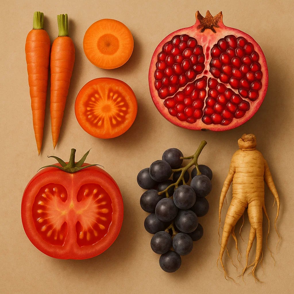 Tomates — Le cœur. Une tomate coupée en tranches révèle quatre cavités, comme le cœur. Les tomates sont riches en lycopène, qui s’accumule spécifiquement dans le tissu cardiaque et réduit le risque de maladies cardiovasculaires jusqu’à 30 %. Le pigment rouge qui crée la similitude visuelle est précisément le composé qui procure ce bénéfice.
